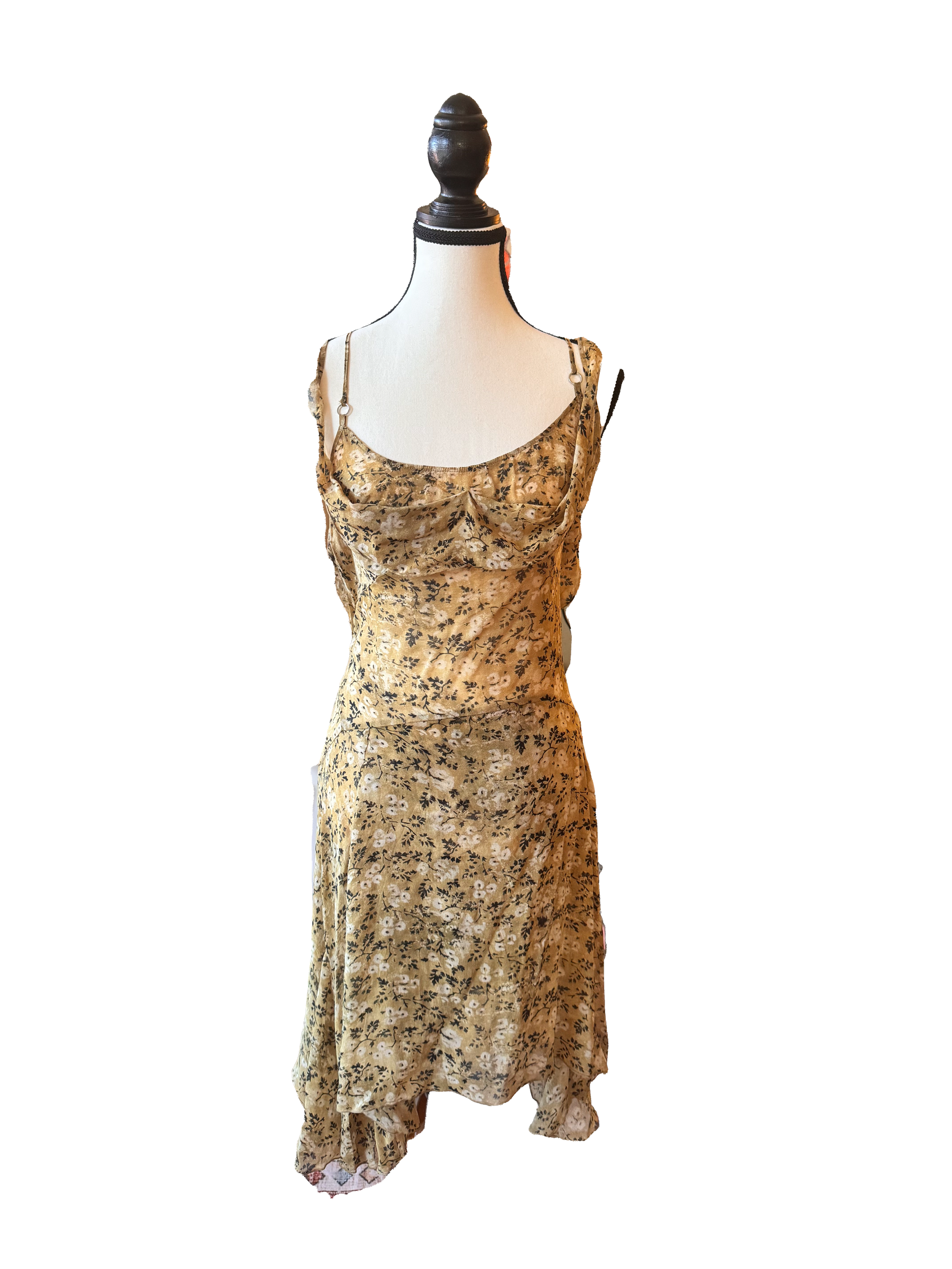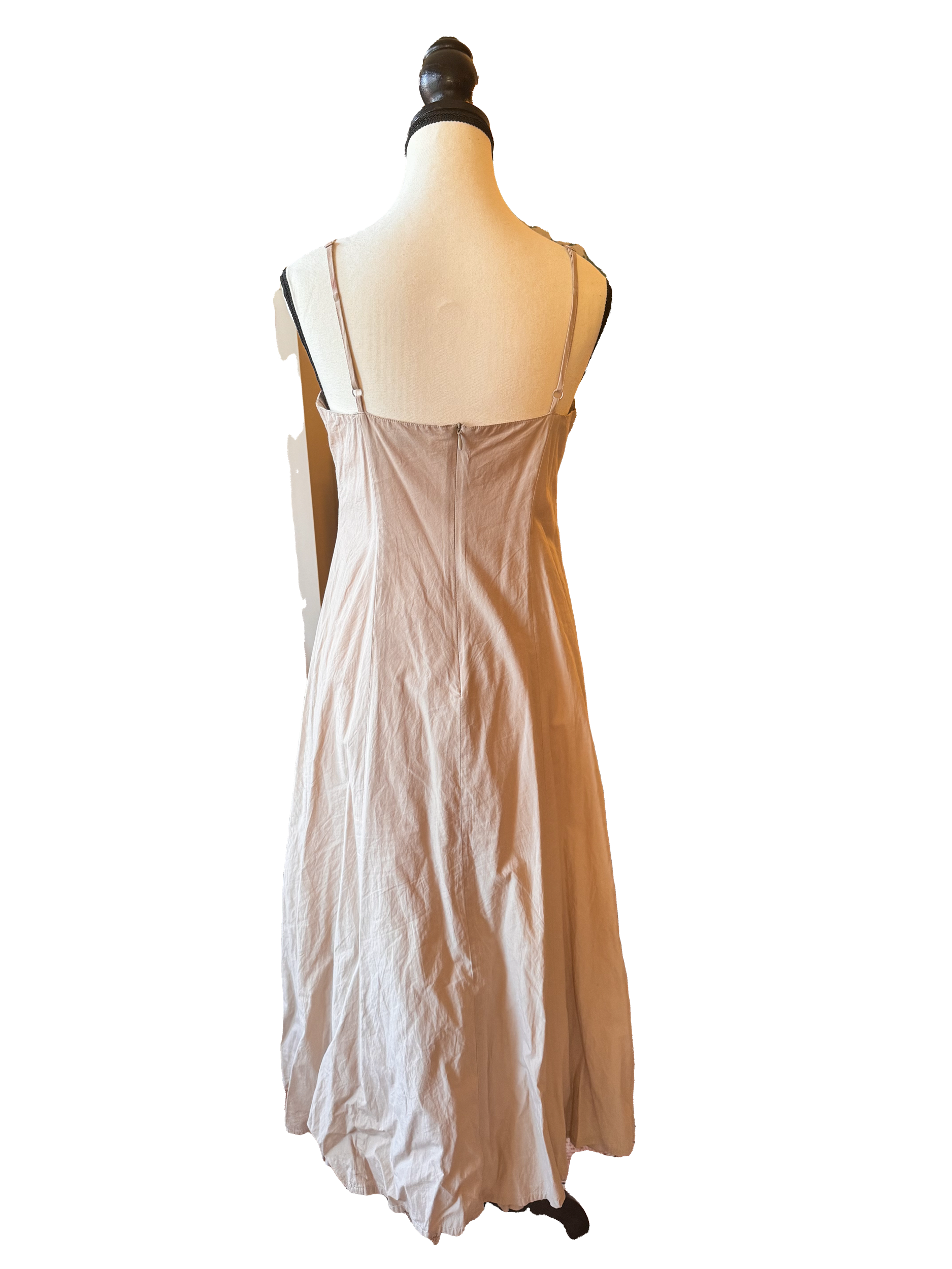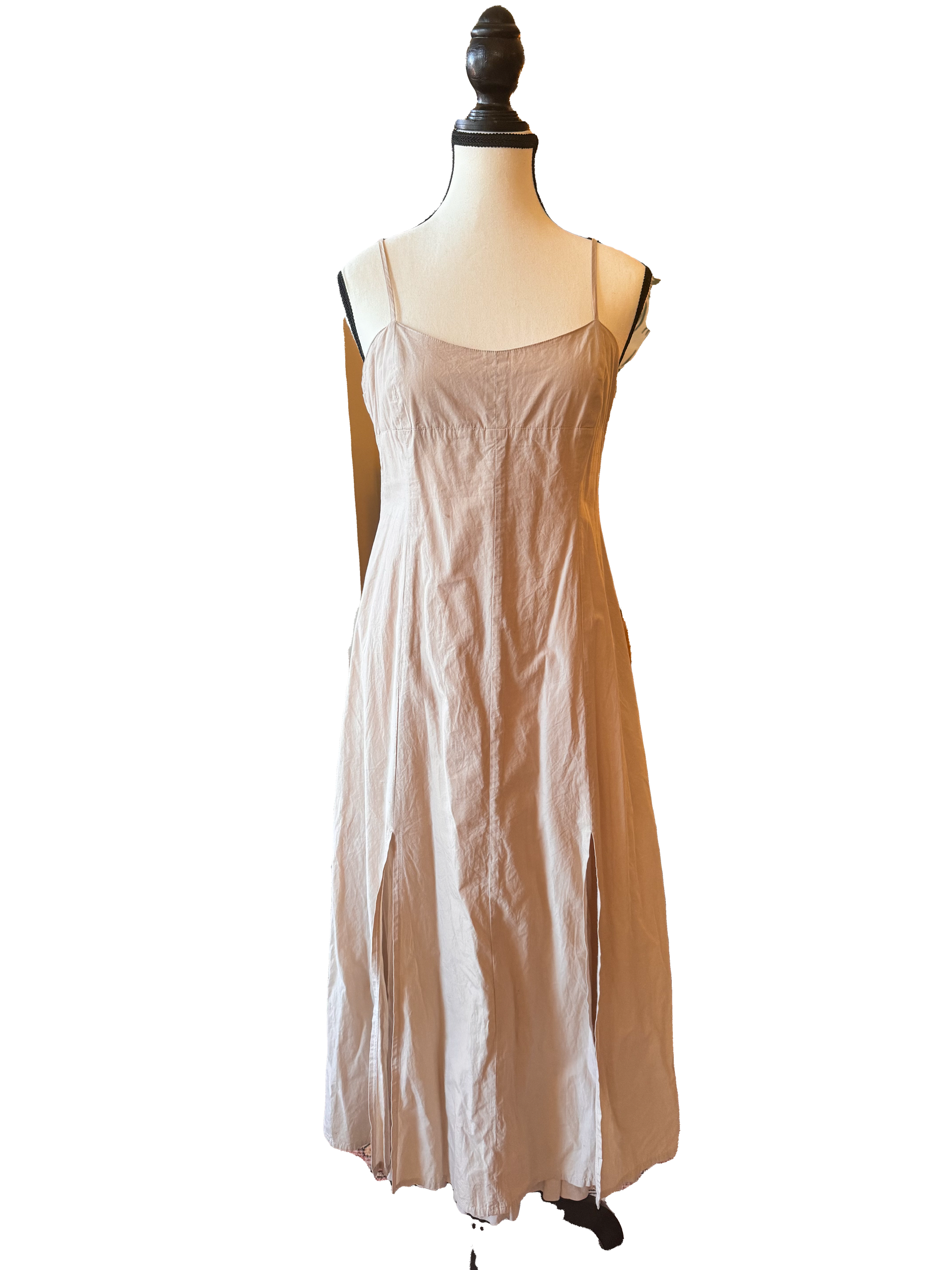 Midi slit dress. First layer has ruffles, second has a couple slits. Adjustable straps. Slight stain that can be washed out on the strap—pictured. Size M.