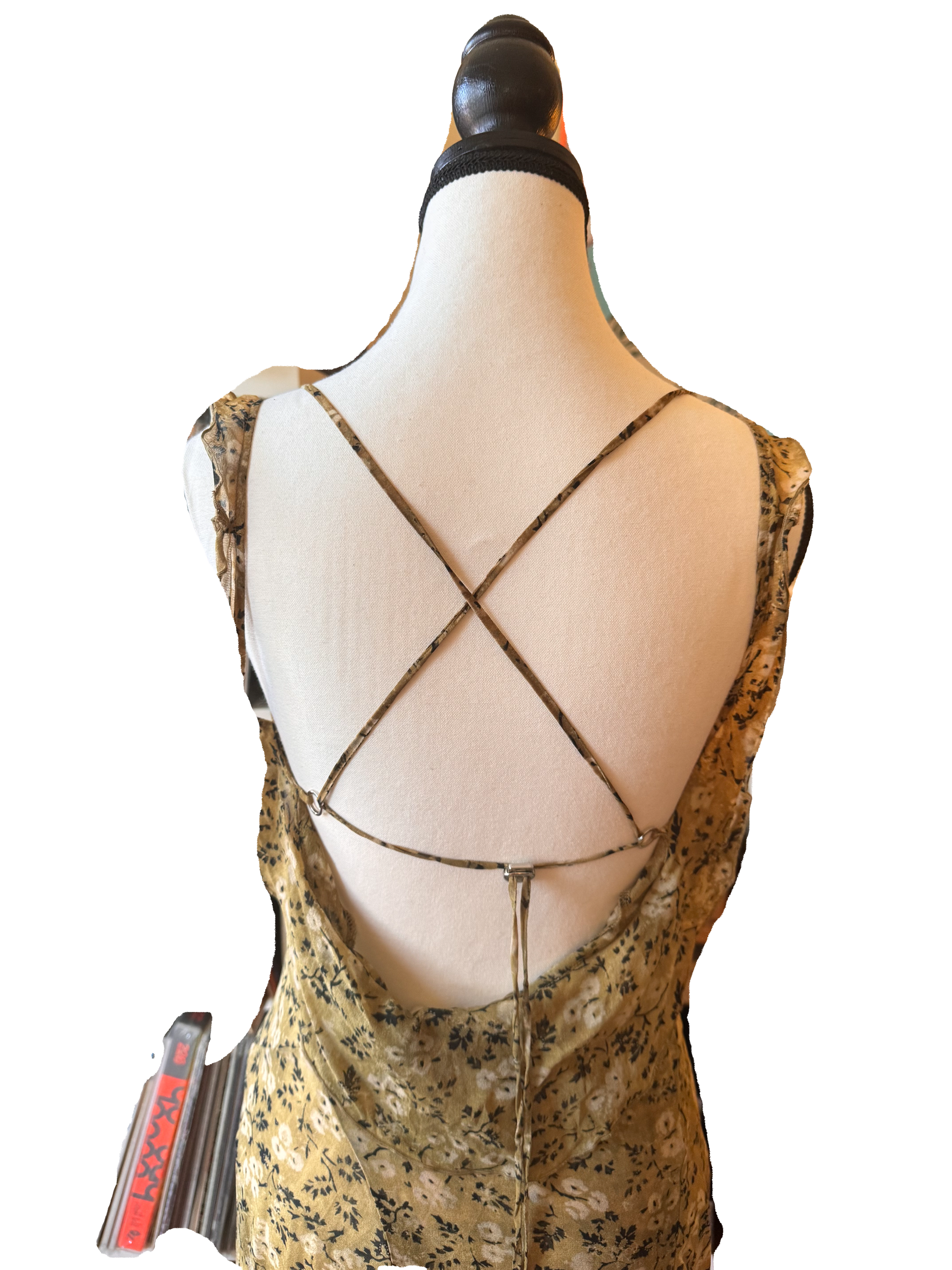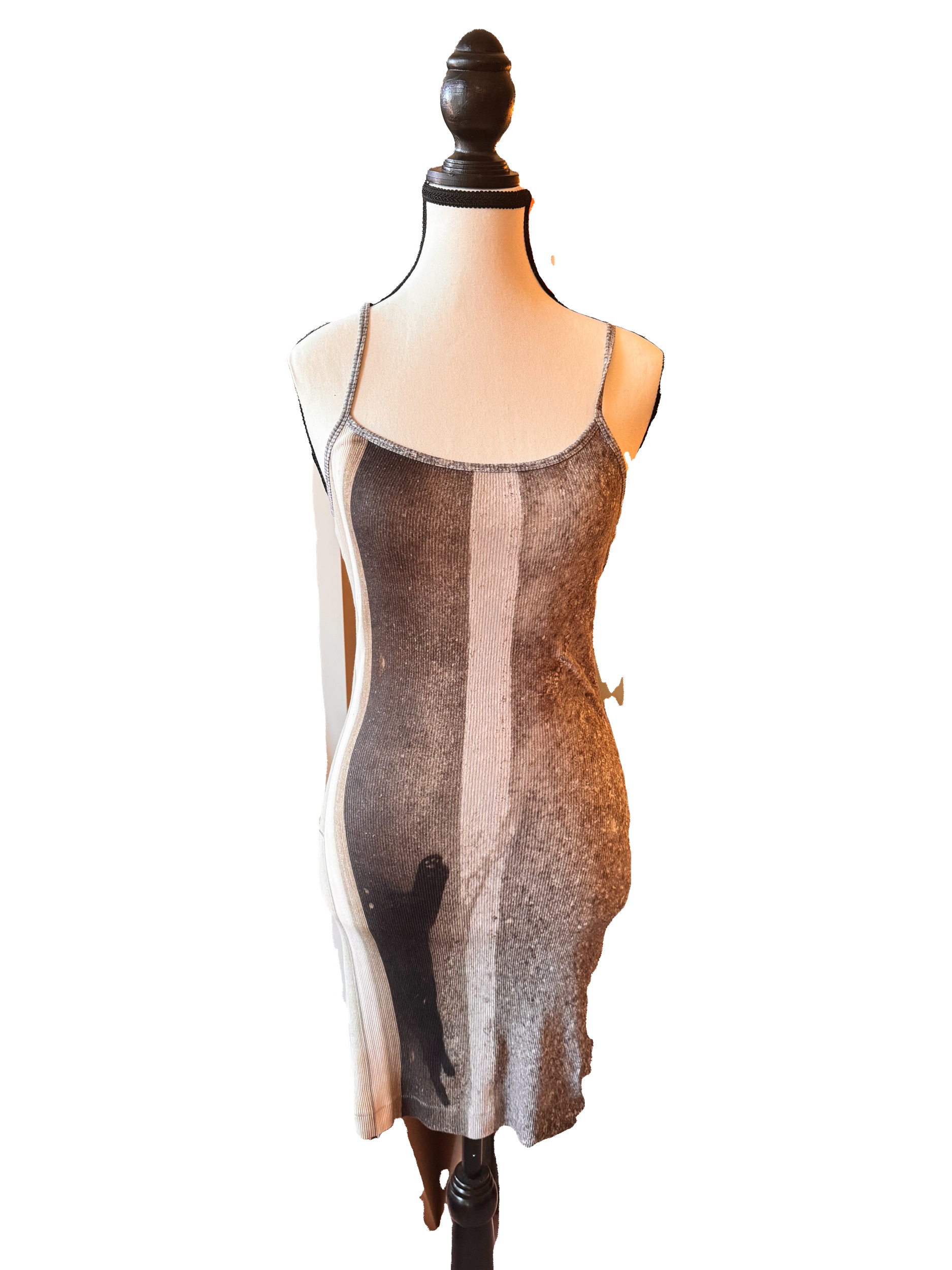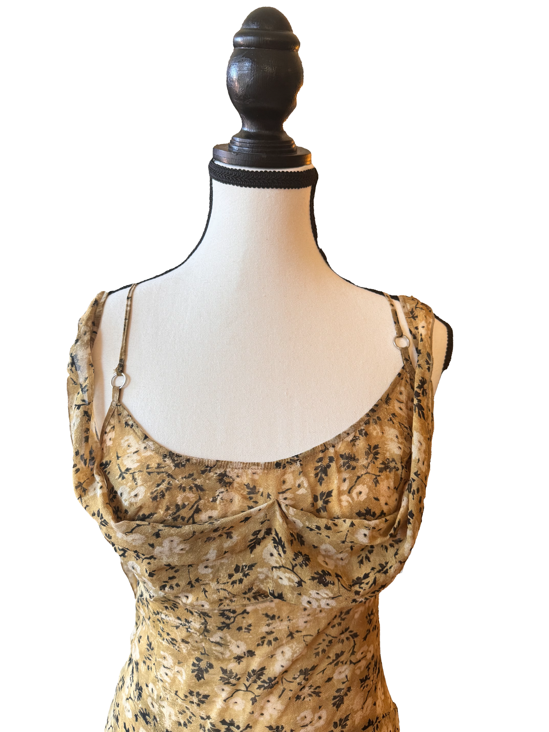 Midi slit dress. First layer has ruffles, second has a couple slits. Adjustable straps. Slight stain that can be washed out on the strap—pictured. Size M.