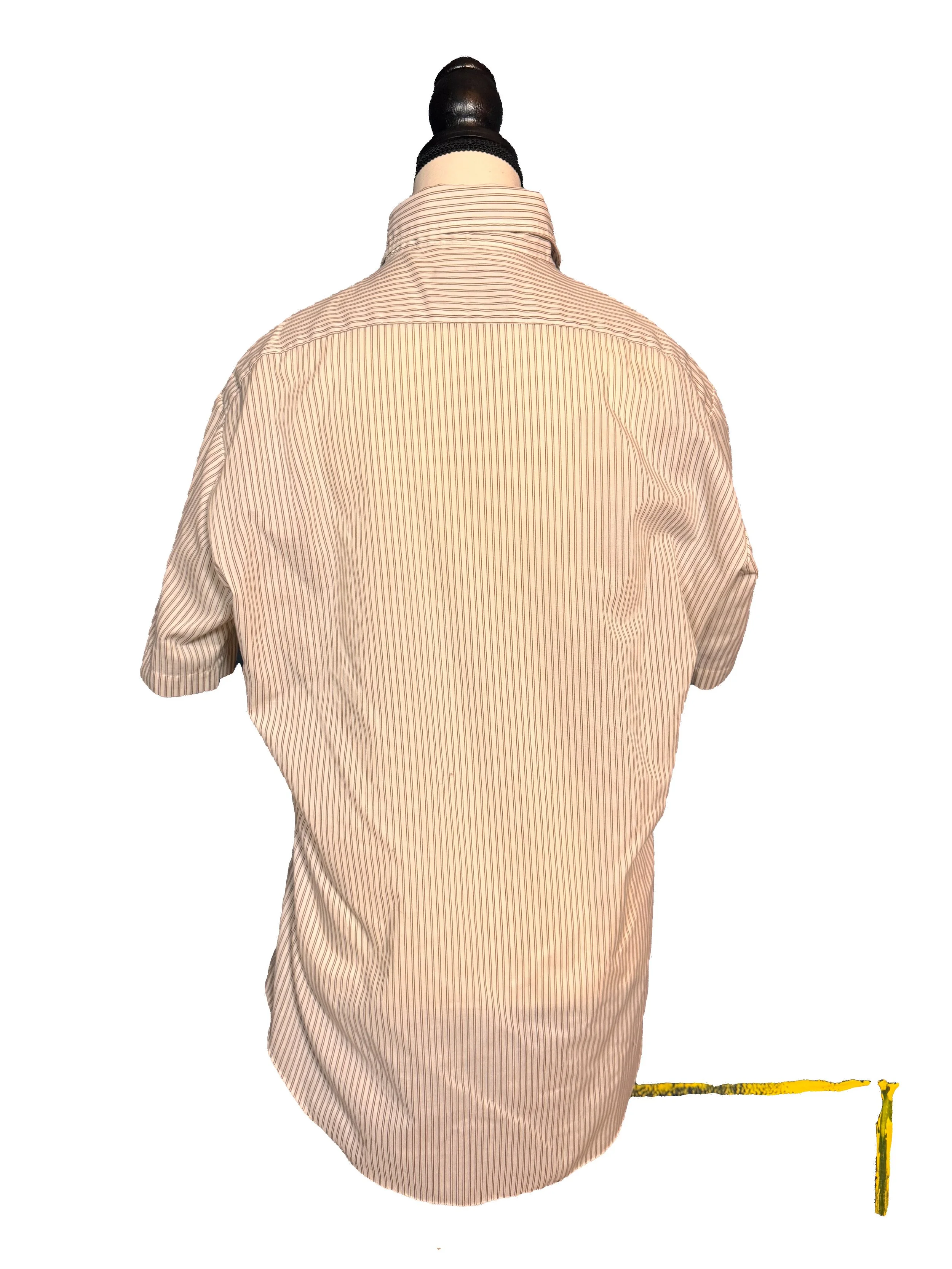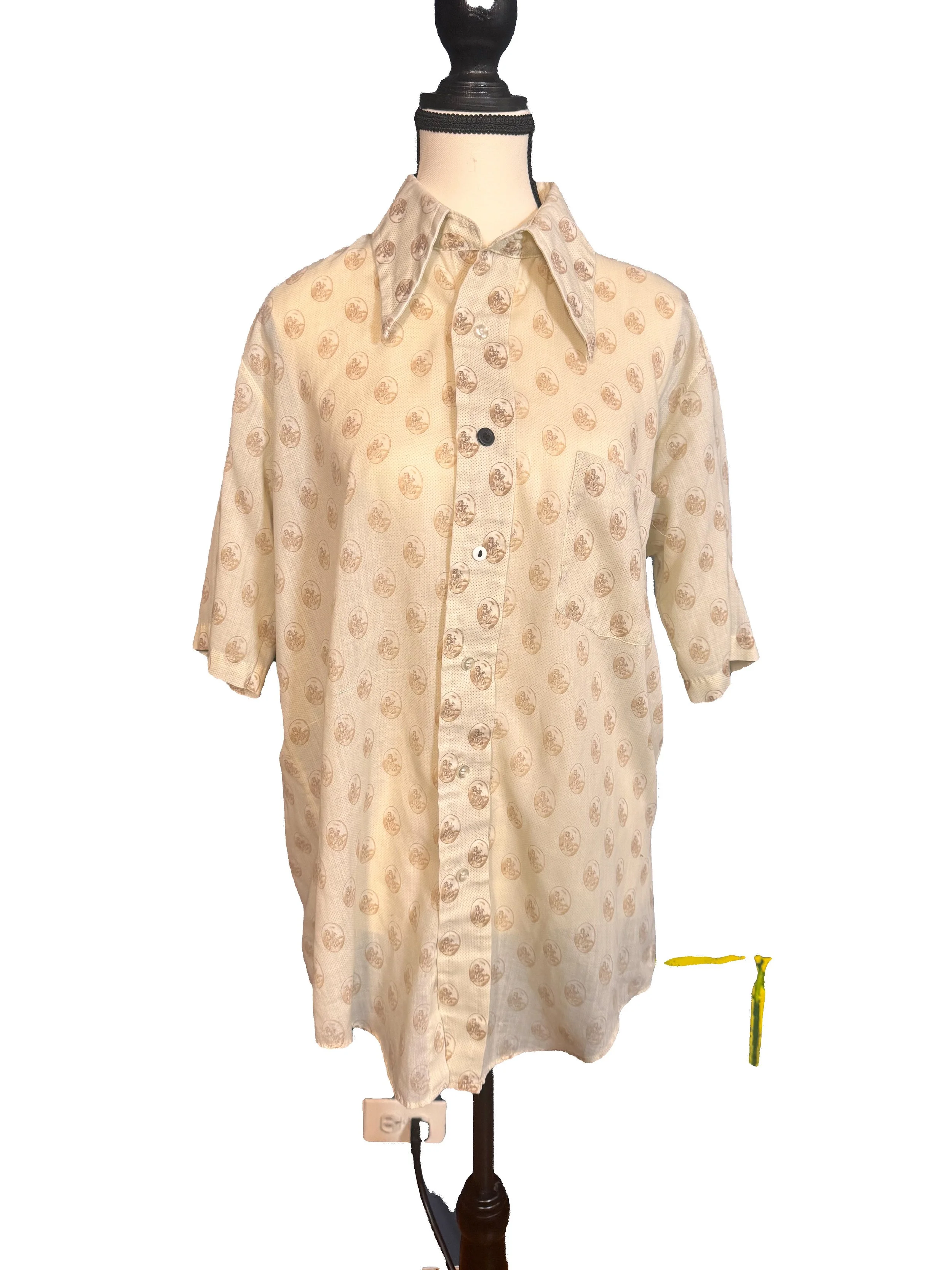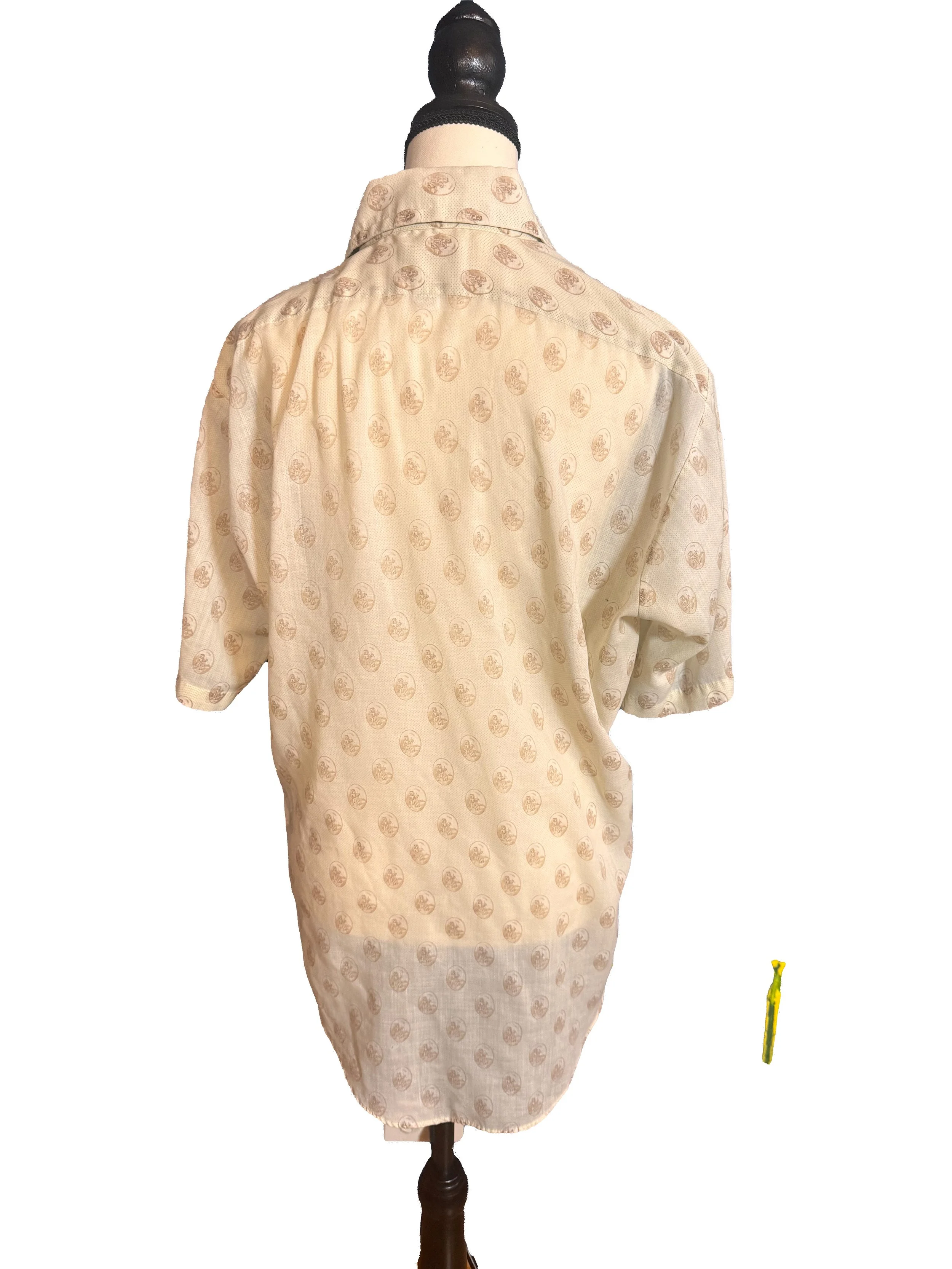 Baby blue cotton blouse size S/M with neon pink & orange floral design. Made in Italy.